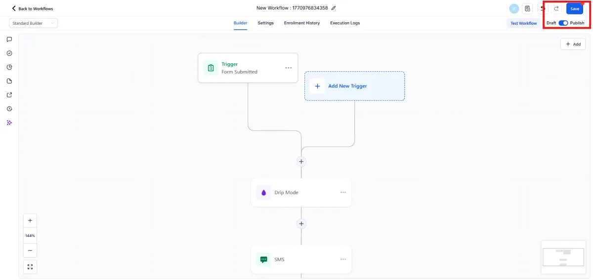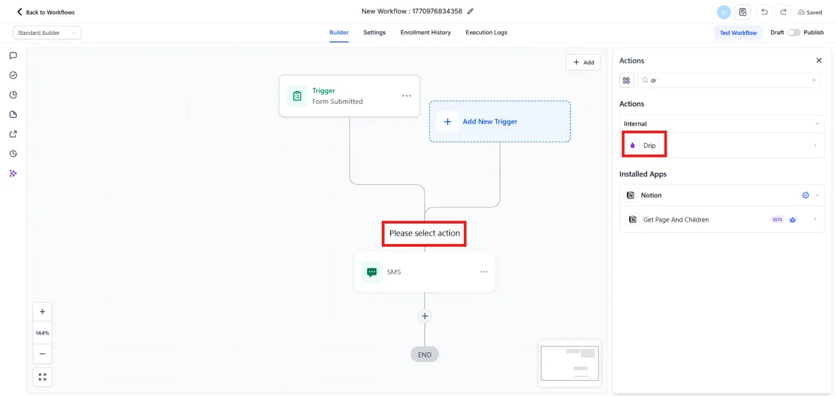6.Add the Drip action BEFORE your Send SMS action.