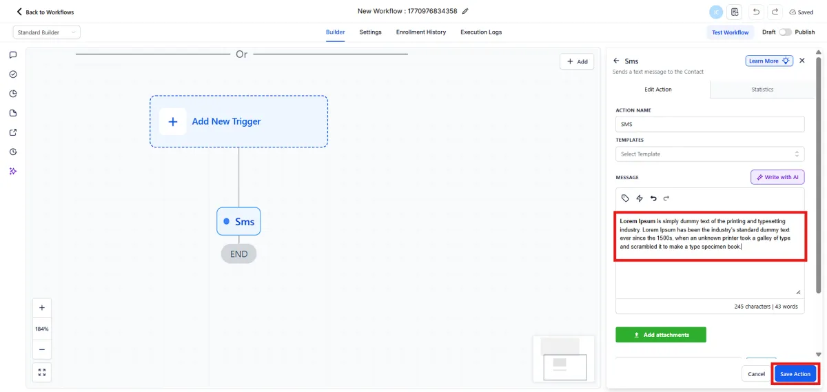 5.Write your engaging message clearly and succinctly, then click Save Action.