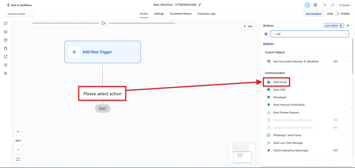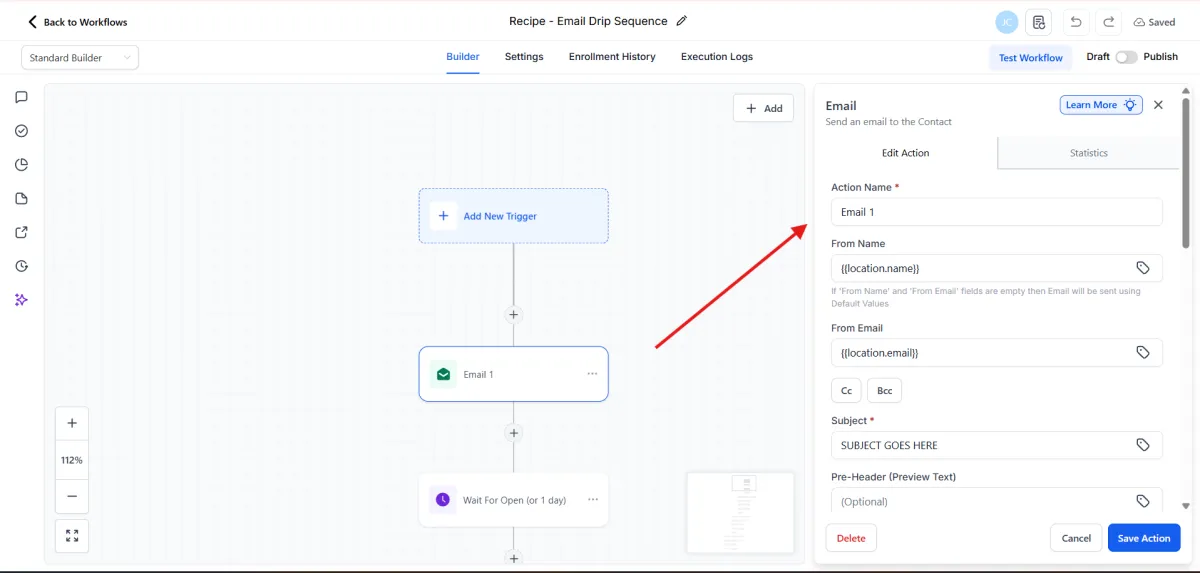 5.Edit the email actions by customizing the subject, message content, attachments, and other details. Then click Save Action.