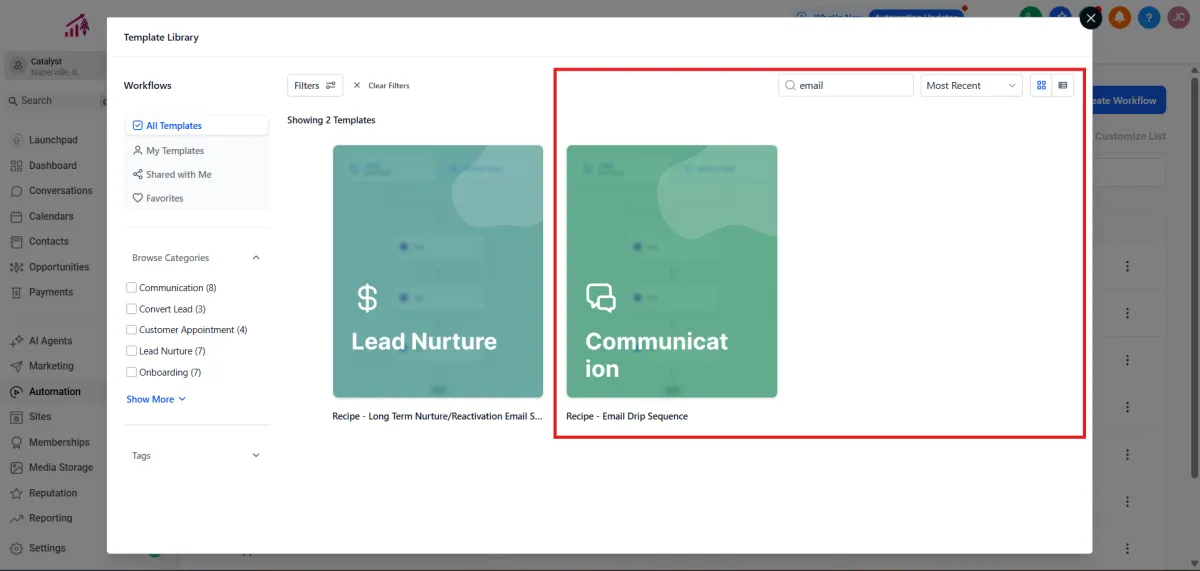 2.Click Create Workflow > Select a Recipe