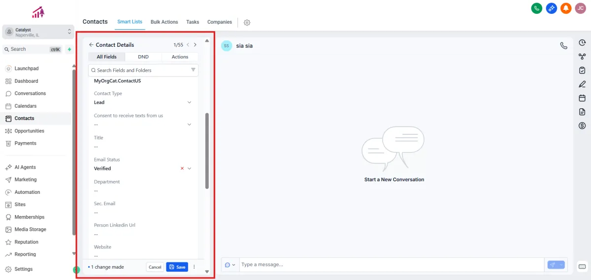 Make the necessary updates on the left-hand side. If you don't see the contact field you need to add information to, use the Create the New Custom Field checklist. Click Save to apply your changes.