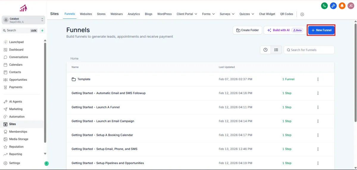 1.Go to Sites > Funnels.
