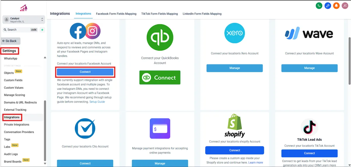 First, let's get Facebook and Instagram working together within your CRM. This integration will be a game changer in how quickly and effectively you communicate with customers.